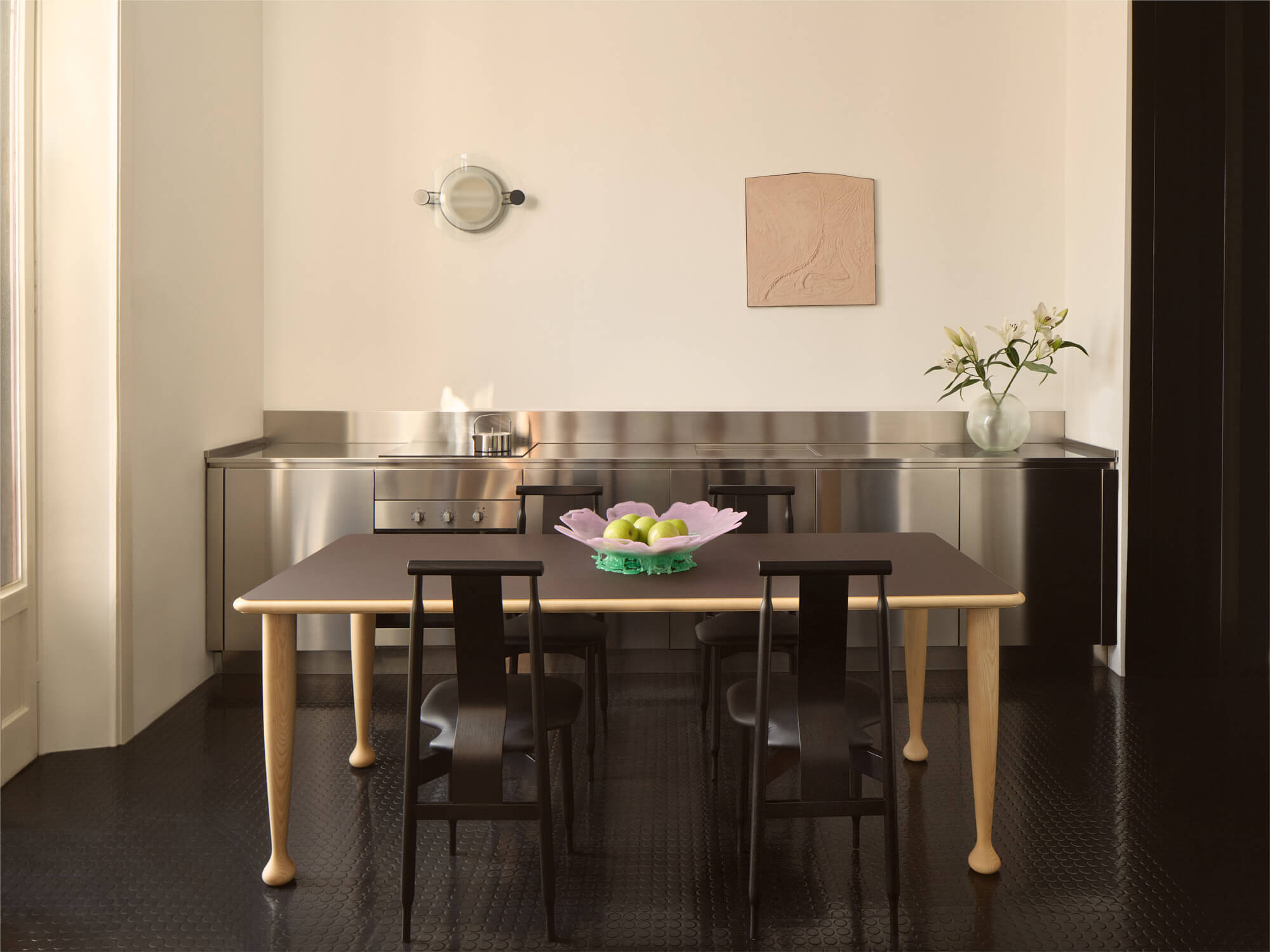 The concept of the Morbio table – named after that town – was developed by Castiglioni precisely for his house in Switzerland. Morbio gives concrete form to Achille Castiglioni’s idea that tables should allow users to freely move their legs and knees without bumping into the support structure below the top: this was the main characteristic of the design.