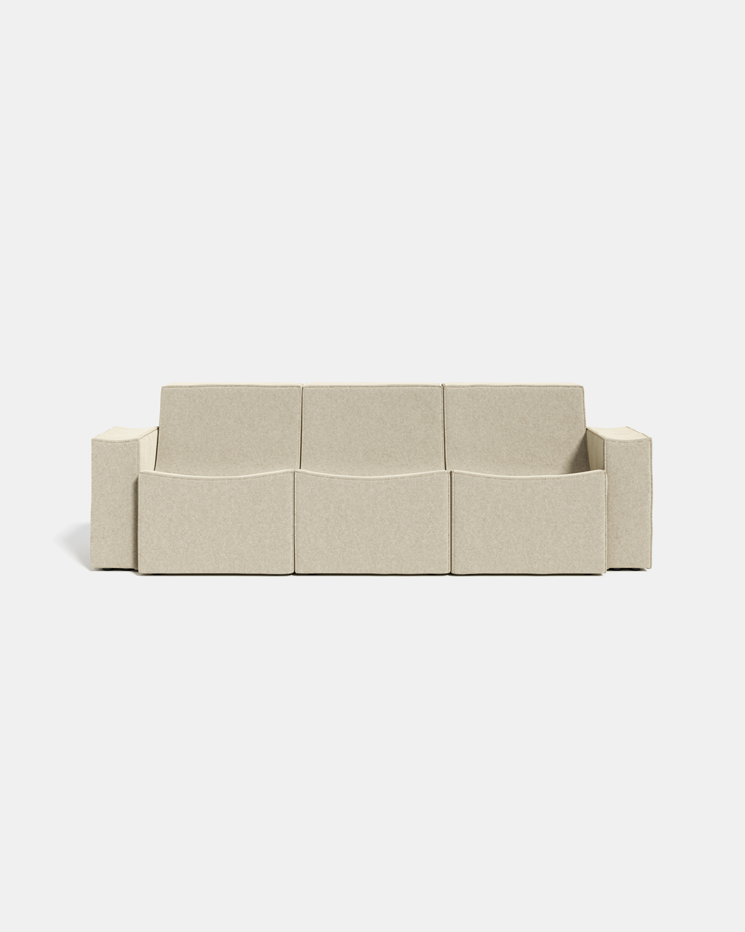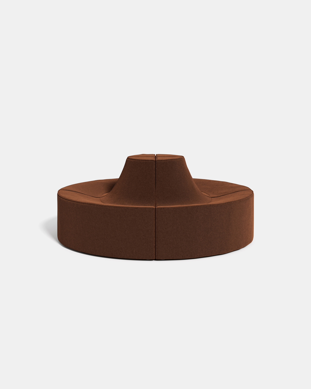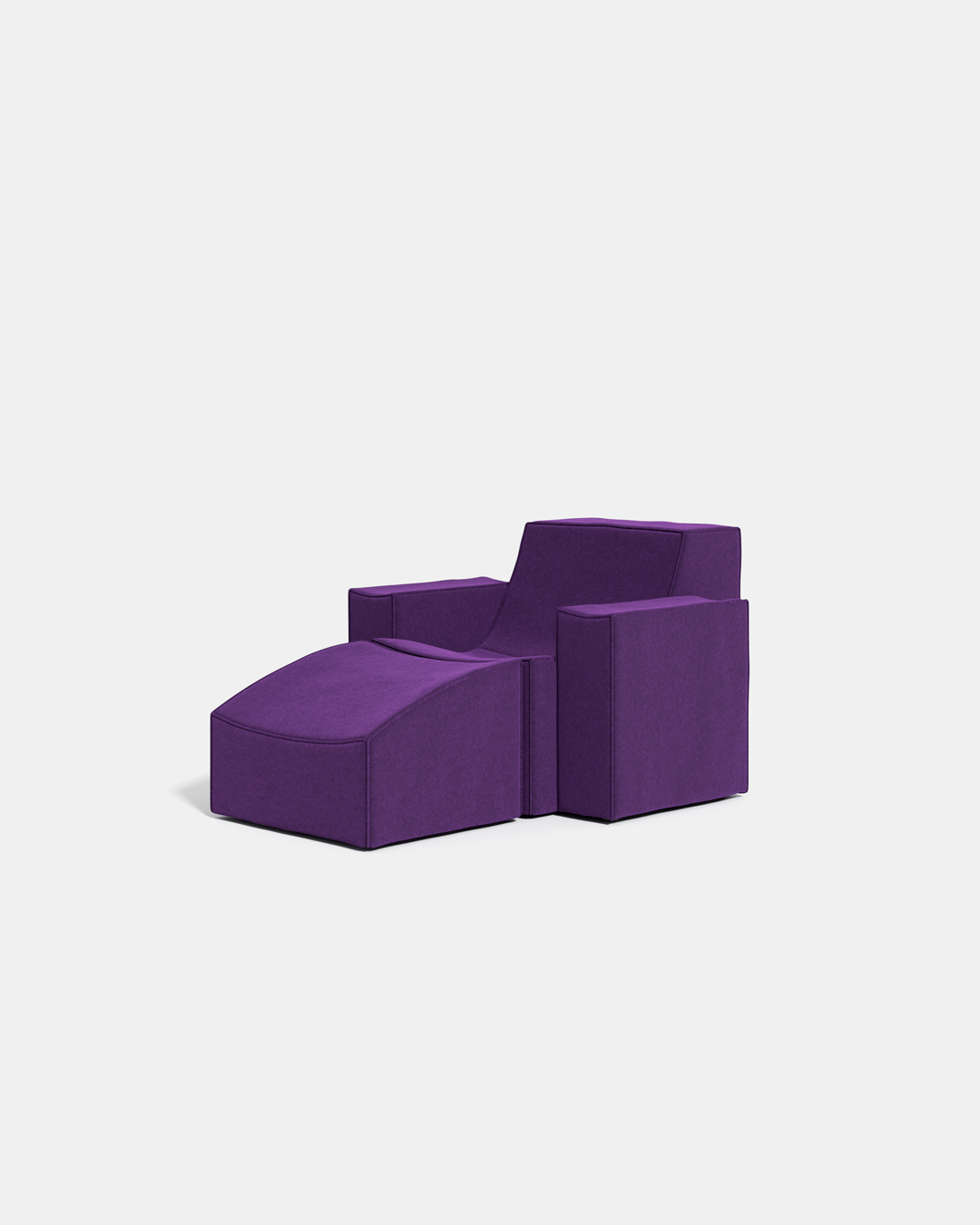 In Scoop, softness is a secret revealed only upon sitting. The fabric—a warm, velvety felt with raw-cut stitching—further emphasizes the apparent rigidity of the geometric profiles. Fine craftsmanship meets design in a seating system where comfort becomes a delightful element of surprise, contrasting with its sturdy silhouette. Furthermore, the interlocking units of Scoop create a geometric pattern, forming a continuous and potentially infinite seating arrangement.