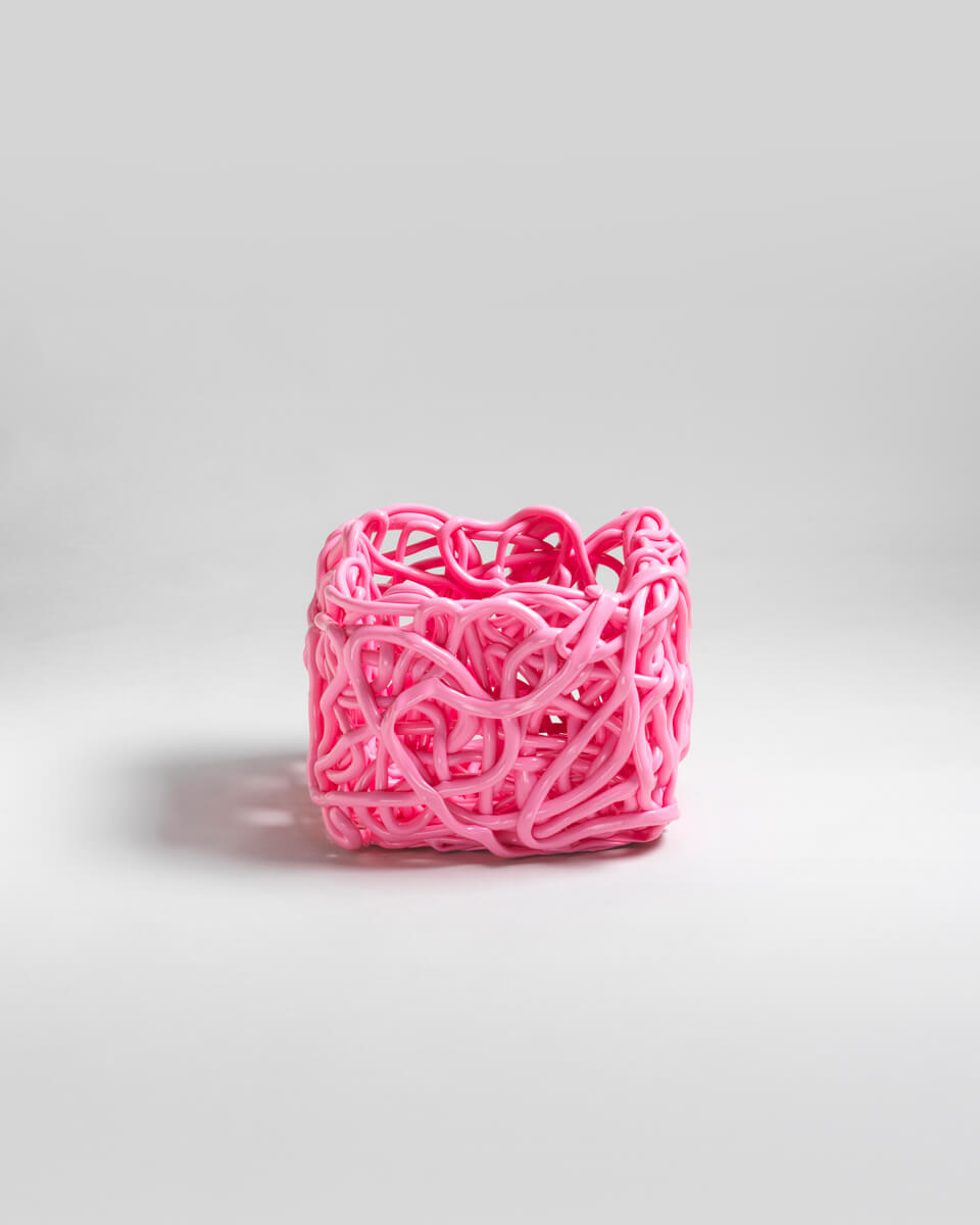 La serie Senzafine di Gaetano Pesce si sviluppa in vivaci vasi disponibili in forma ovale, quadrata o rotonda. Questi particolarissimi oggetti sono formati dalla continua estrusione di un cordolo di poliuretano che l'artigiano aggroviglia, creando forme morbide e organiche. I vasi Senzafine testimoniano più che mai l’unicità di ogni singolo pezzo di Edizioni del Pesce, grazie a una produzione quasi espressionista, basata sul gesto dell’artigiano.